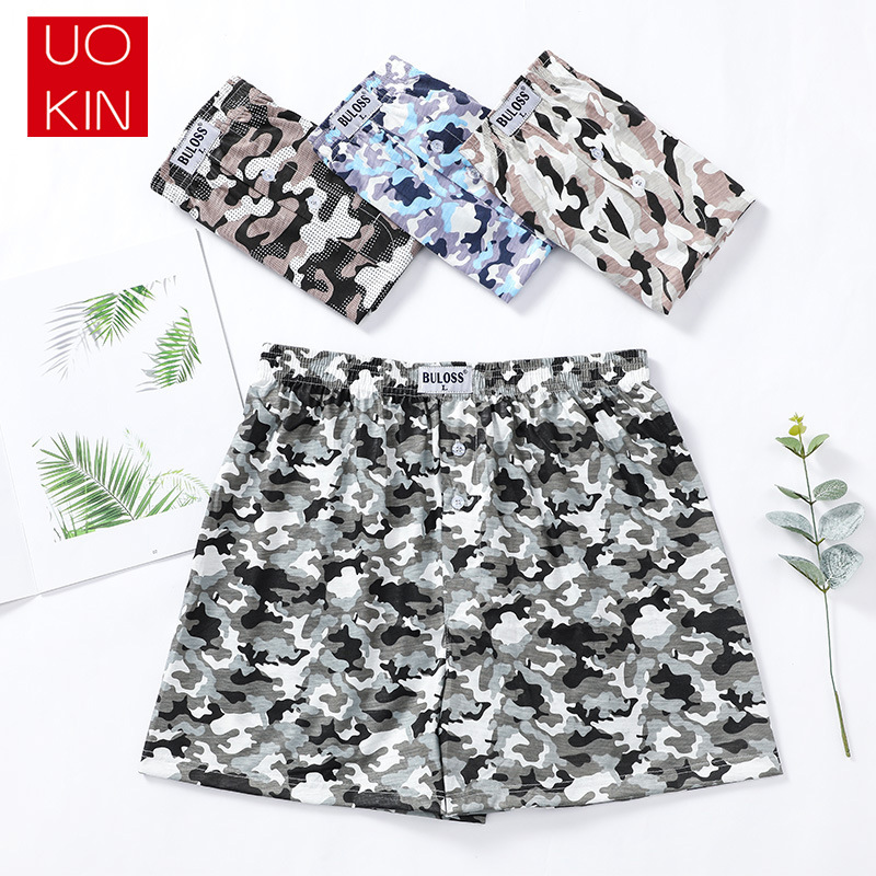 (SG Seller) 4 Pcs Men Plaid Printing Loose Boxer Casual Shorts Arrow Pants Pajamas Home Wear Wide Led Elastic Waist Breathable Underwear Plus Size Sleep wear Underpants