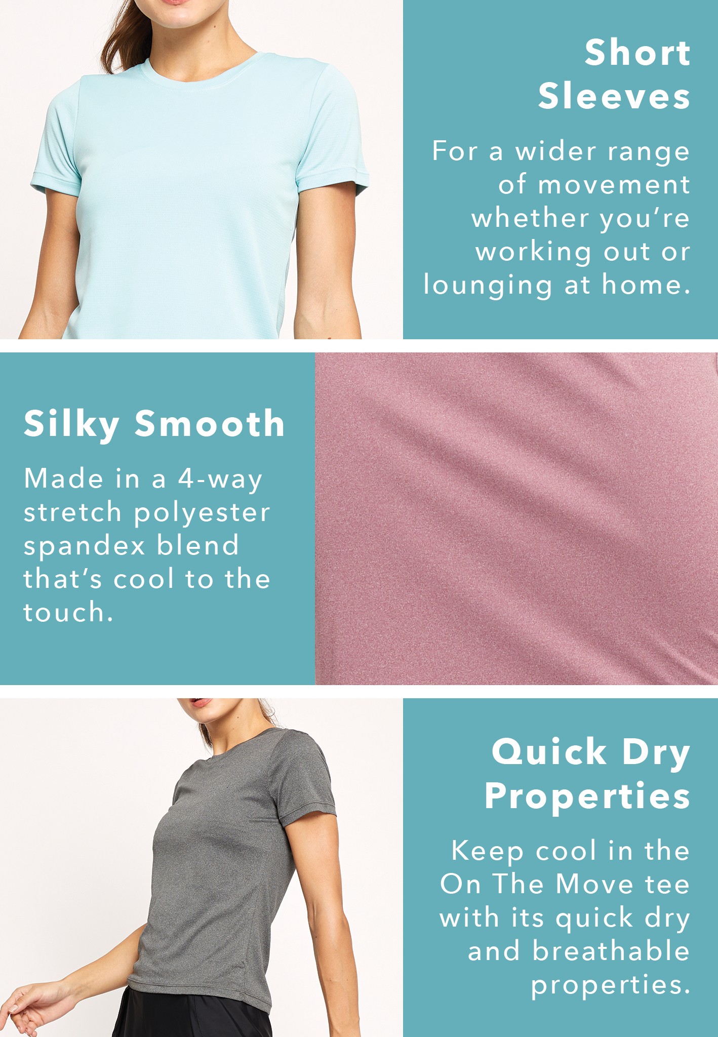 This silky-smooth tee flatters the body by combining fashion and function. Whether you gym, practice yoga, go for a run, or a walk, the lightweight and non-sheer fabric keep you cool, dry, and comfortable.