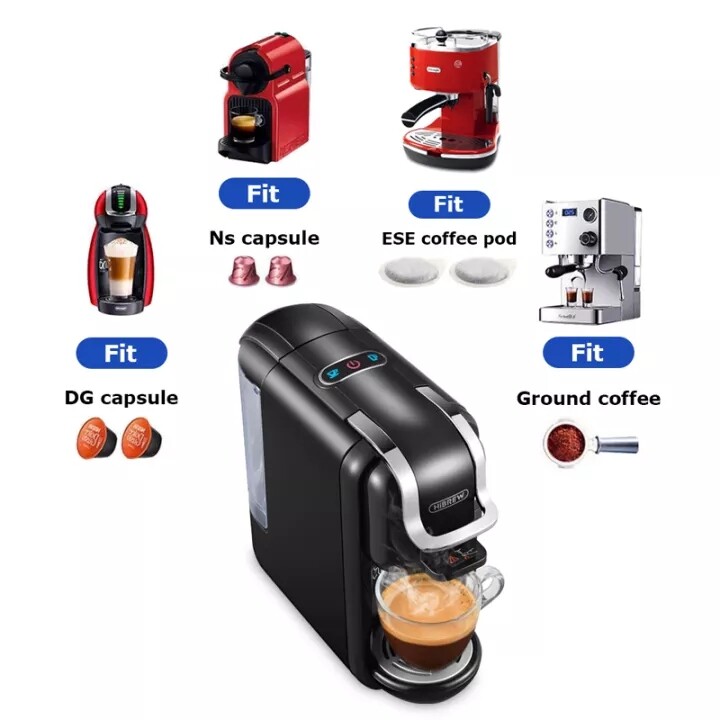 HiBREW ST-514K 4in1 espresso coffee machine 19Bar automatic capsule coffee machine compatible with Nespresso, Dolce Gusto Capsule, Coffee Powder and ESE coffee pod (optional Adapter for illy pod, Lava