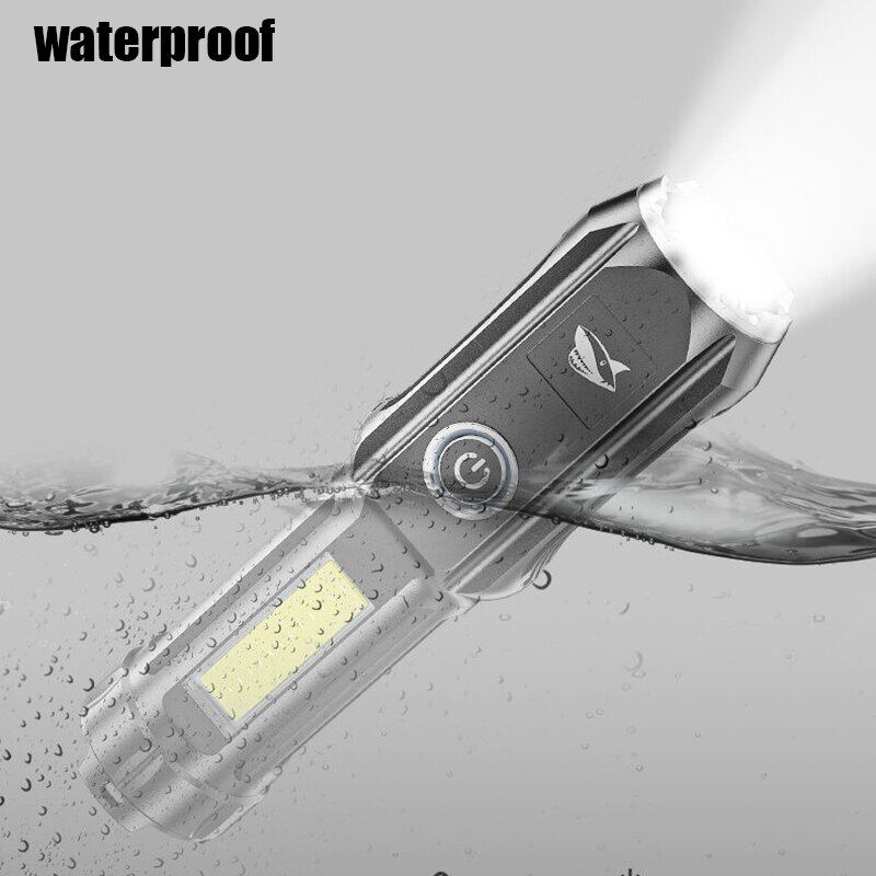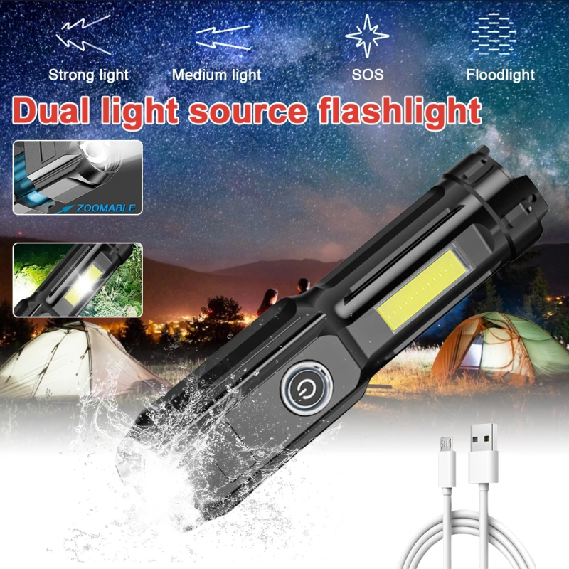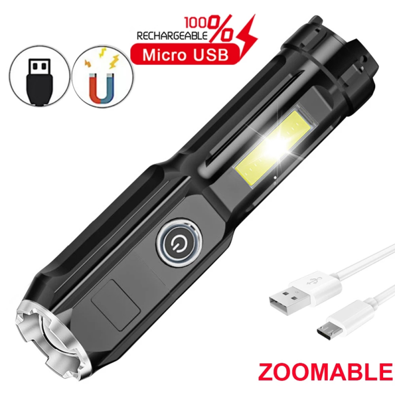 Powerful Zoomable USB Rechargeable Flashlight Super Bright torchlight T6 led flashlights With COB Side Light Portable Camping Light Strong light Torch light