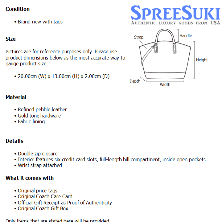 All our products are 100% authentic and purchased from Coach stores in USA. We are a reputable registered business in Singapore and it is illegal to sell counterfeit goods in Singapore. This product also comes with a gift receipt which is printed by the Coach store that we purchased the item from. It states the item that we purchased and the Coach store that it was purchased from, proving the authenticity of the item. Buy with confidence.