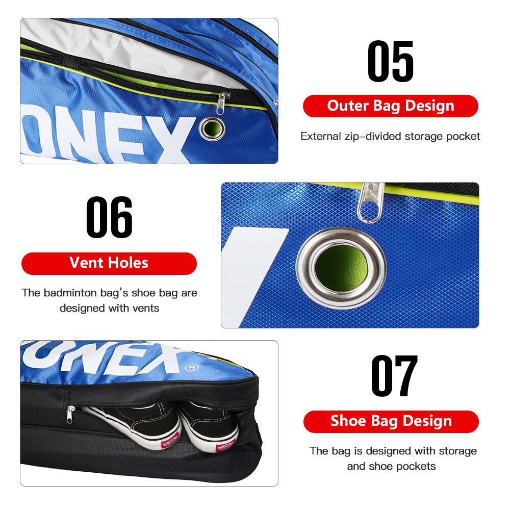 Zacro[Ready Stock] Y-onex 9332 Badminton Bag Double Zips Bag with Shoes Compartment Shoe Bag+ 2 Main Packets 2 Sides Pockets +1 Sling Straps Maximum capacity can hold 6 badminton rackets