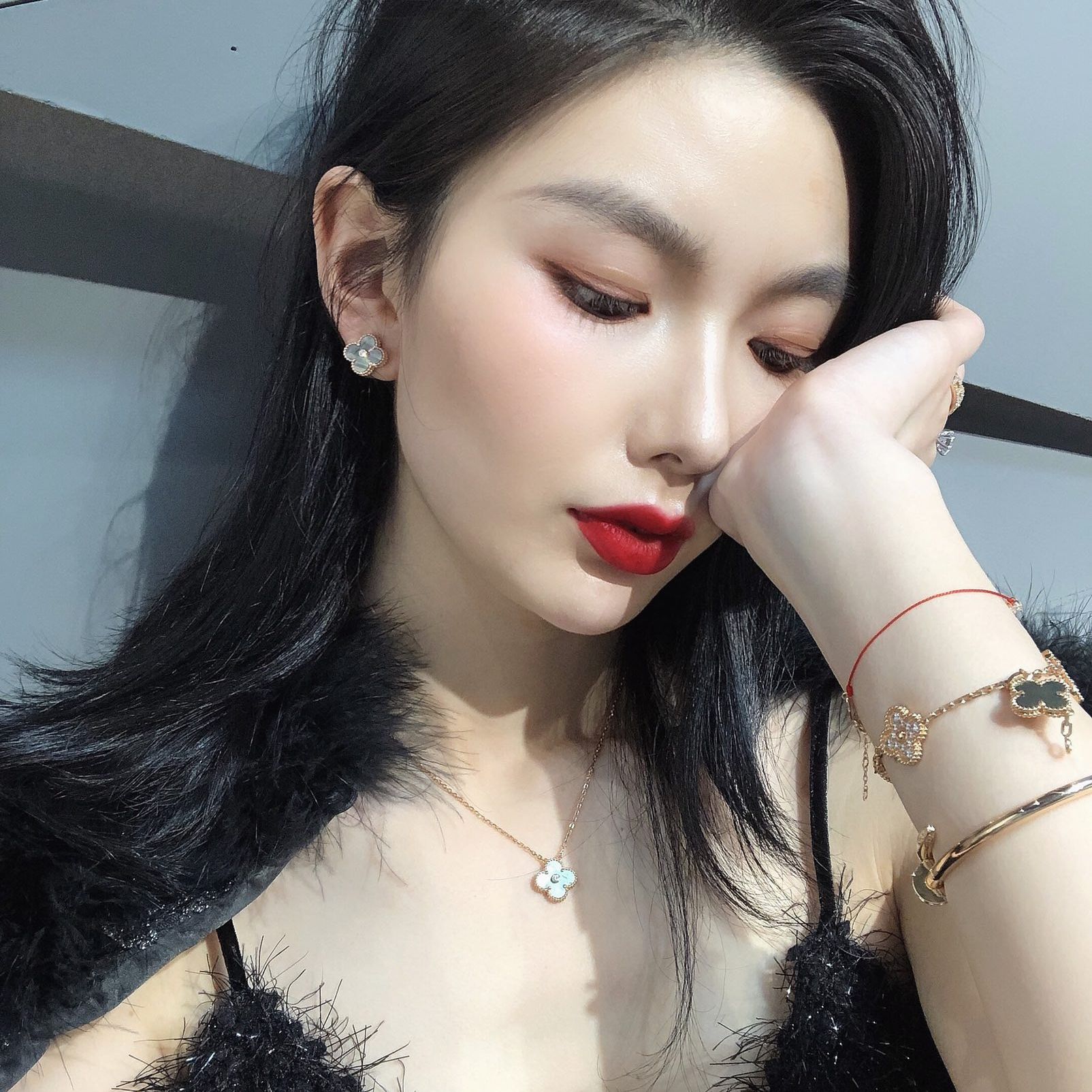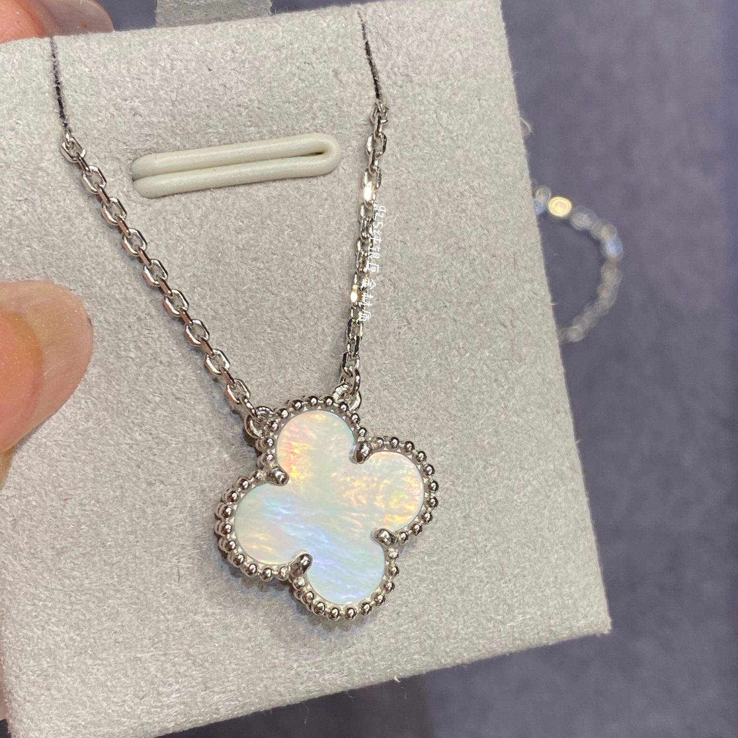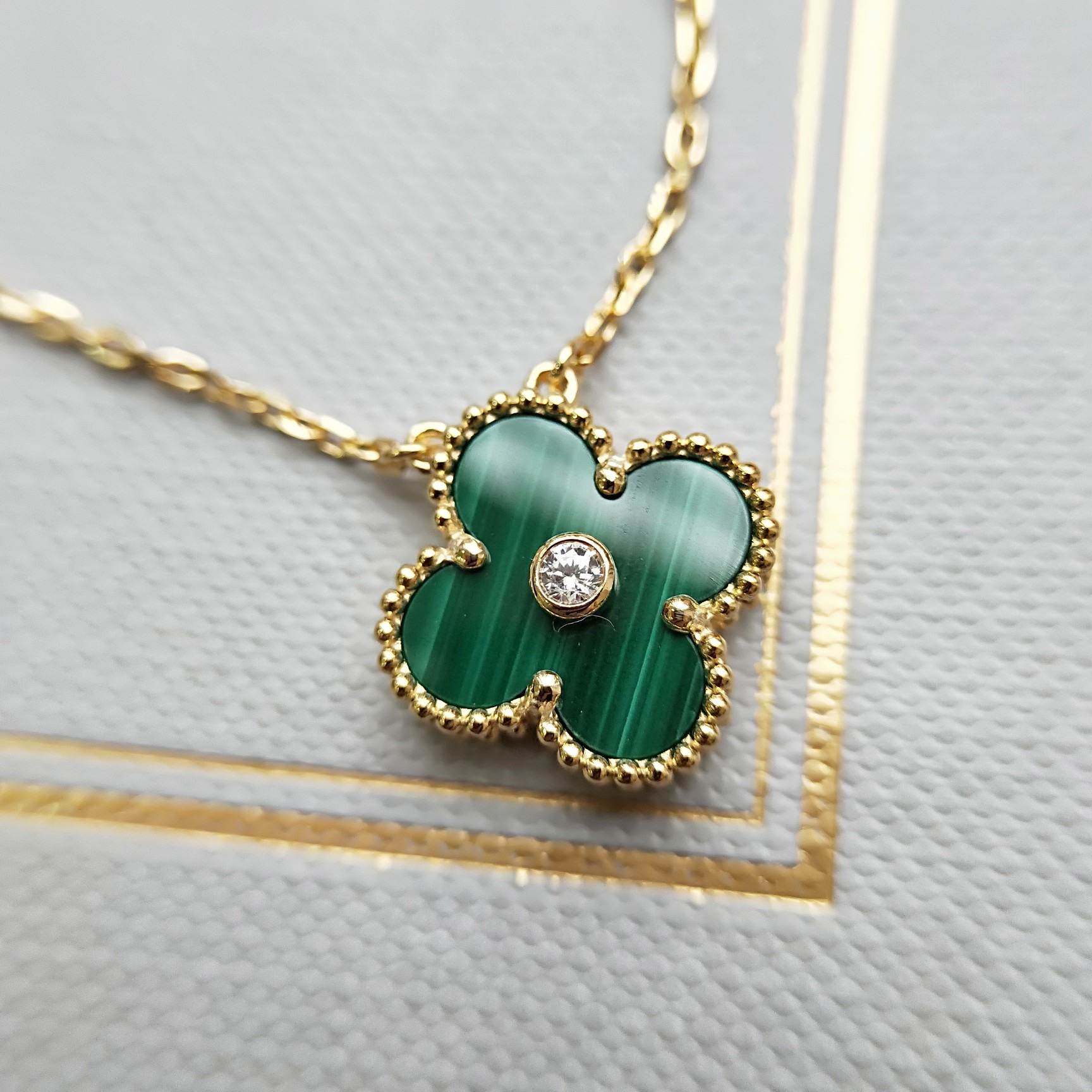 Inlaid with high-quality natural stones, the four-leaf clovers are hand-set