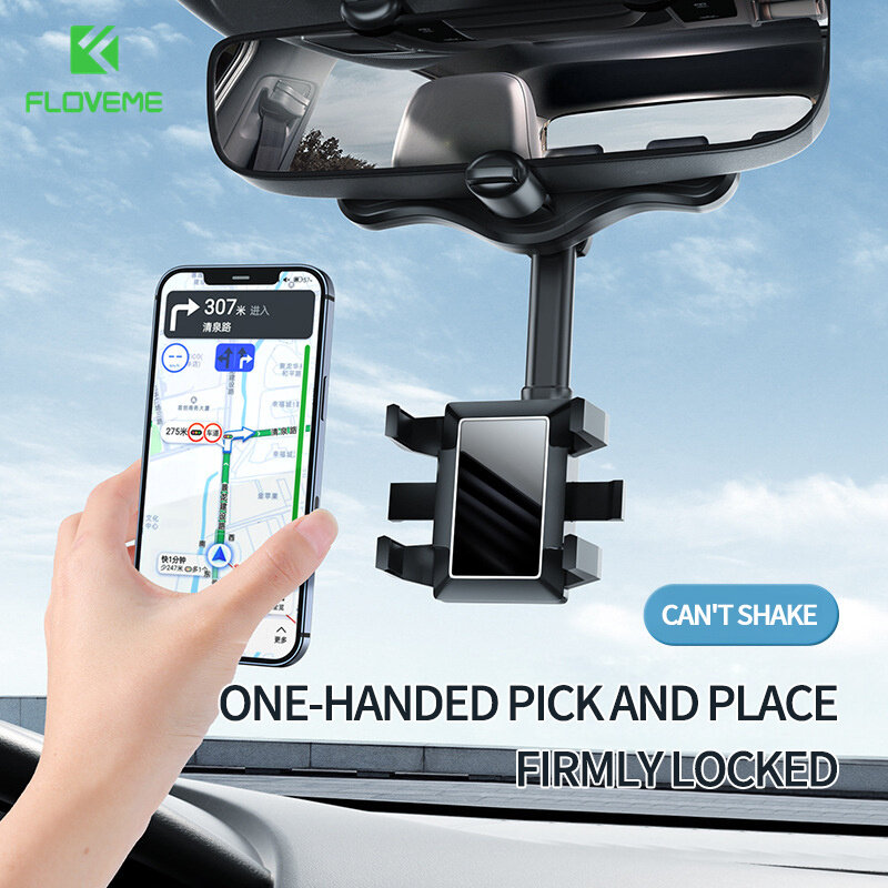 FLOVEME New Multifunctional Car Phone Holder for iP 13 Pro Max 12 Pro Max Samsung S22 Ultra S21 Ultra Car Rearview Mirror Mount Holder for Huawei Xiaomi OPPO Vivo AR Navigation Car 360° Rotating Retractable Car Phone Bracket