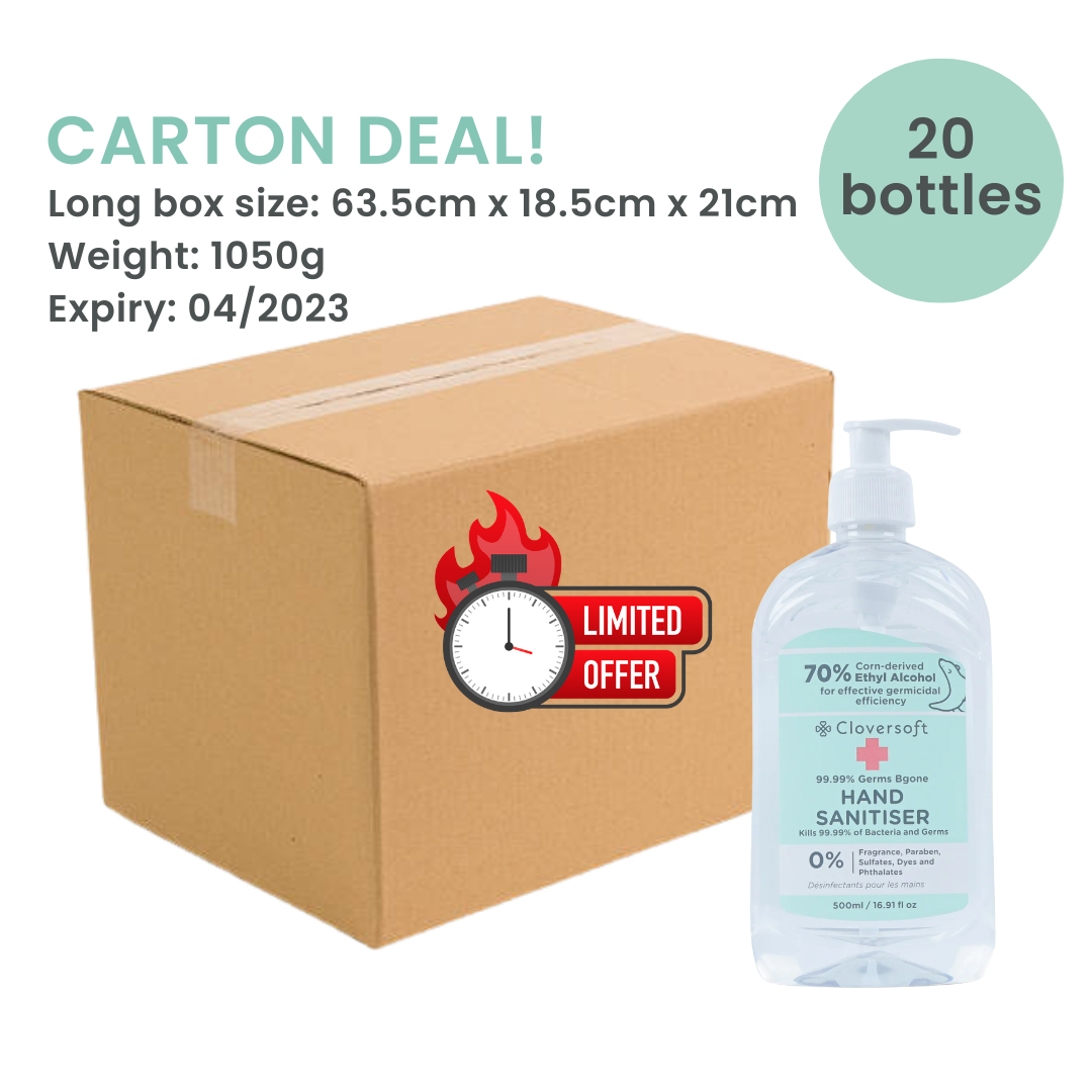 Cloversoft Plant-Based Hand Sanitizer 500ml 99.99% Germs Bgone Gel-based Eco-friendly Corn Derived Alcohol Gentle Refill, Special Promo Carton Deal