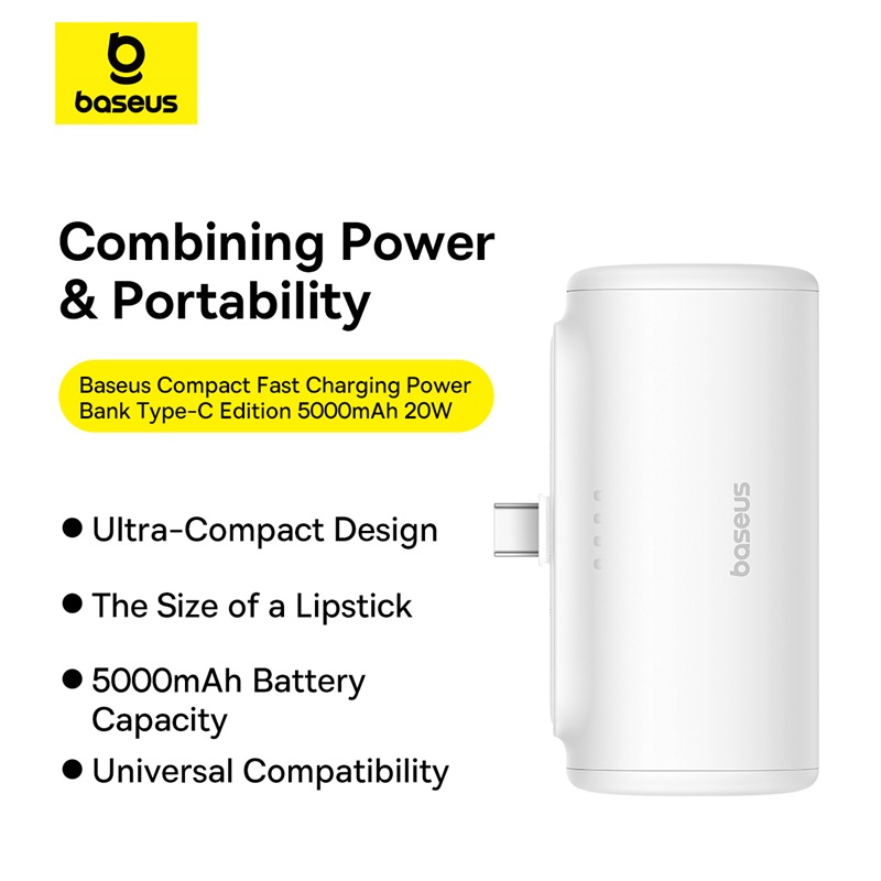 【Local Stock-48 hours shipped】Baseus Fast Charging Power Bank with Built-in USB-C 5000mAh Portable Charger 20W for iPhone 15/15 Plus/15 Pro/15 Pro Max Sansung S22 and more