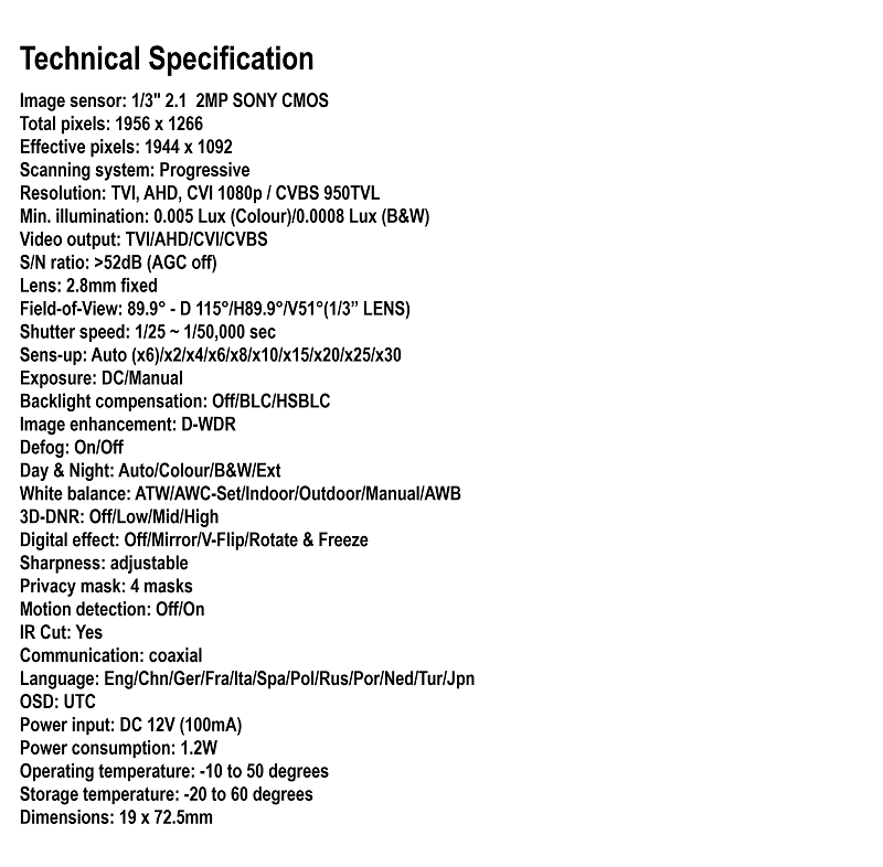 Low Light Mini Bullet Outdoor Waterproof CCTV Camera 2MP 4-IN-1 AHD / TVI / CVI / CVBS