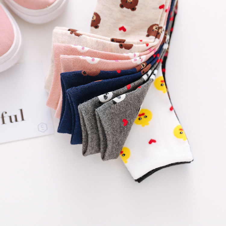 (10 pairs, 10 colors) Brown bear socks For Women Men Kids Children Cute Cartoon Short Socks