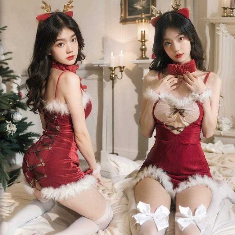 Bella’s Fantasy Women's Christmas Sexy Lace Lingerie Set See Through Sleepwear Sexy Nightgown Gift Set Red One Size