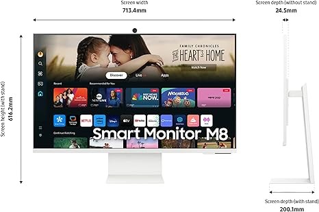 Samsung 32-inch M8 (M80D) Series 4K Ultra HD Smart Display with Streaming TV, Speakers, HDR10+, AI Upscaling, USB-C, Ergonomic Stand, SlimFit Camera, Gaming Hub, LS32DM801UNXZA, 2024